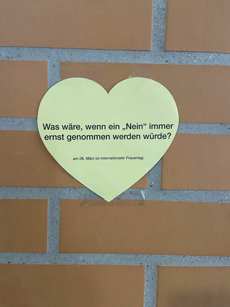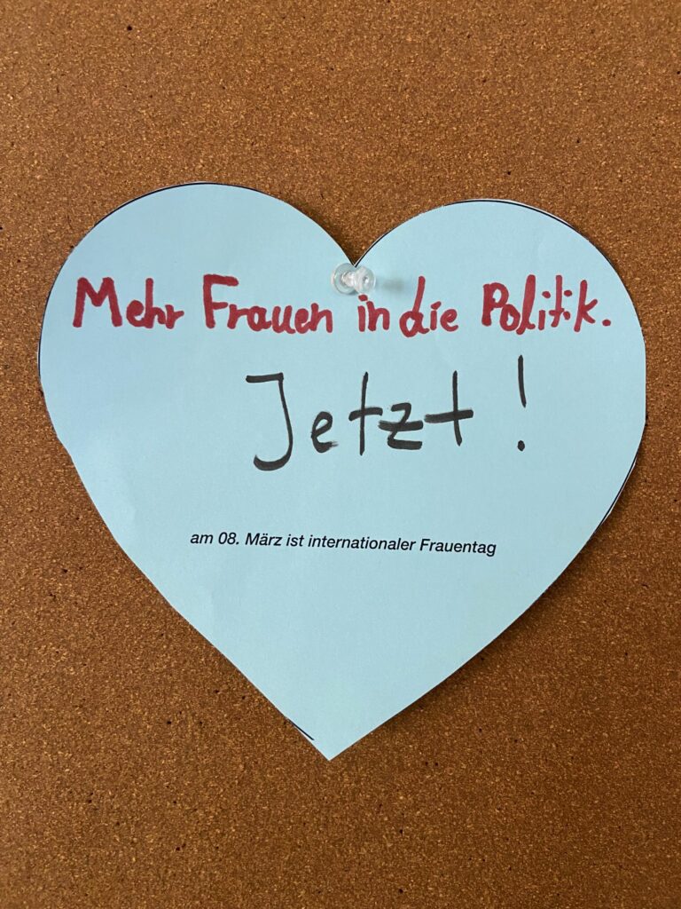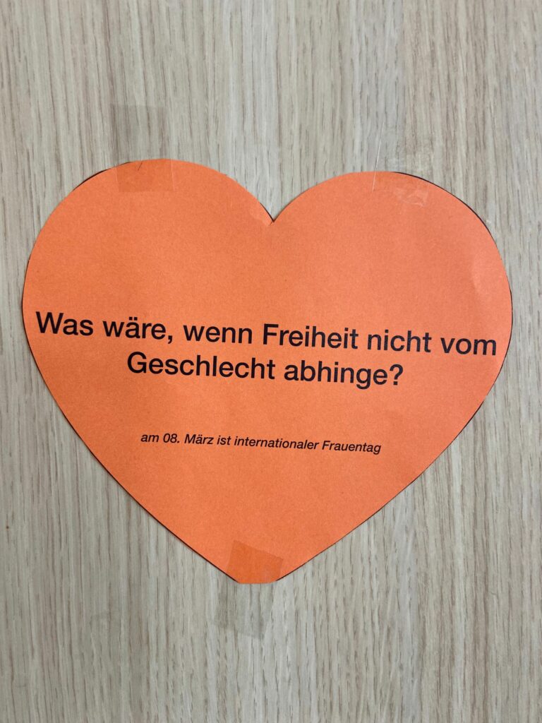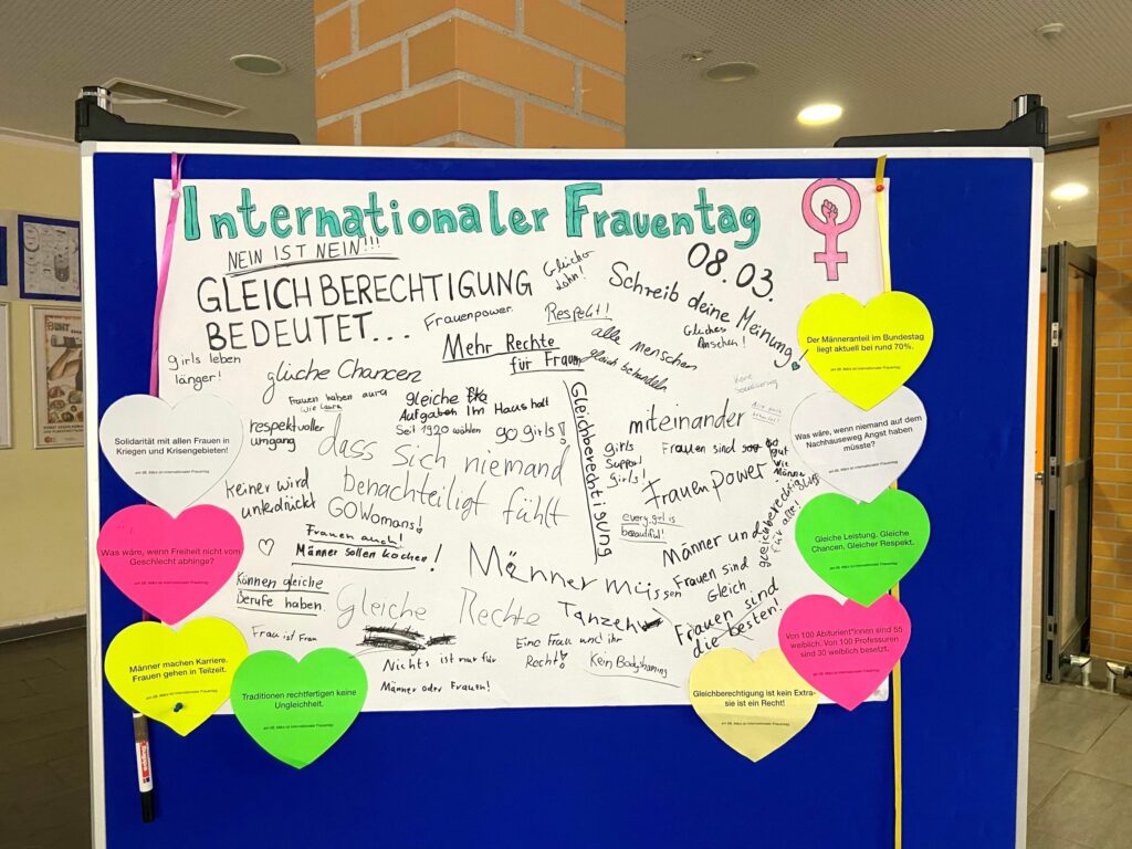 Mit ihren Botschaften wollte die Klasse darauf aufmerksam machen, dass viele Forderungen nach Gleichberechtigung noch immer aktuell sind. Gleichzeitig sollte die Aktion daran erinnern, dass am 8. März der Internationale Frauentag ist – ein Tag, der weltweit genutzt wird, um auf Rechte, Chancen und Herausforderungen von Frauen und Mädchen aufmerksam zu machen.